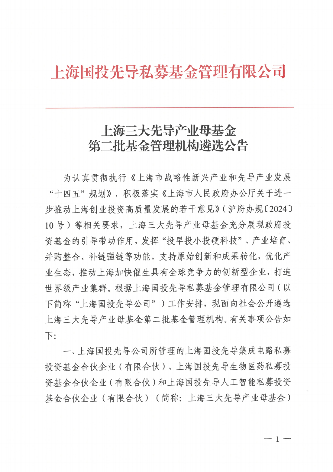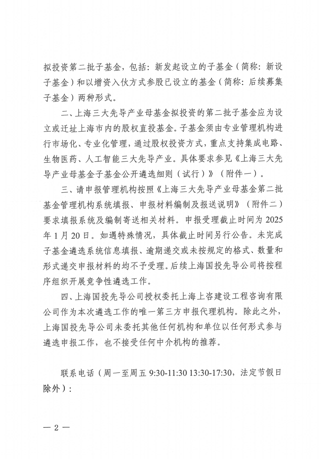 上海三大先导产业母基金第二批基金管理机构遴选公告